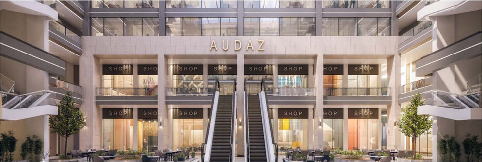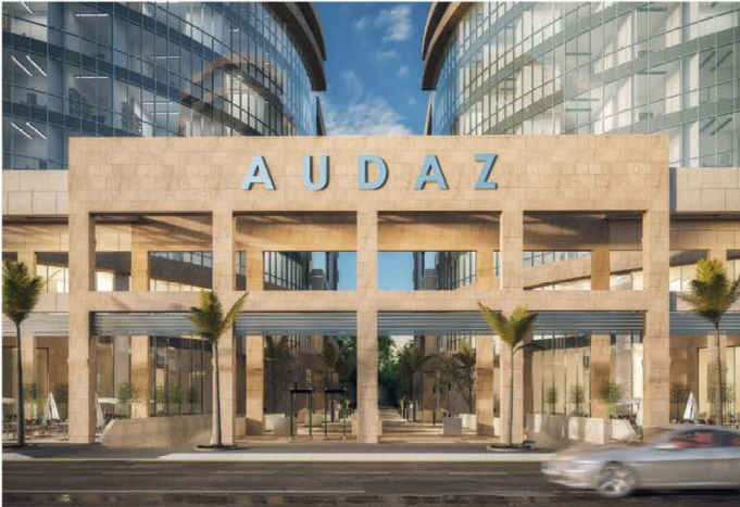 Audaz Mall is located on the right side between two plots of land allocated to international hotels (only two hotels in the financial district) and on the left side are the ministries.